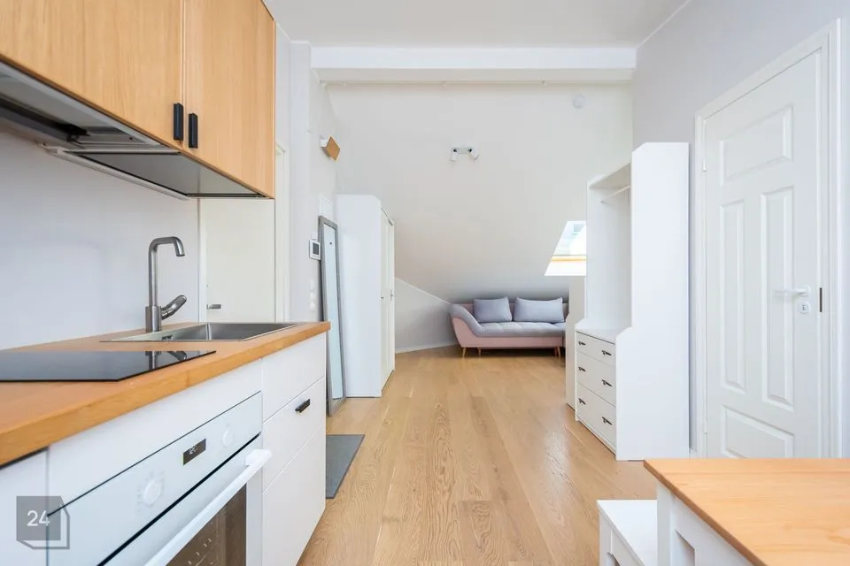 Üüriturule on lisandunud väga heas seisukorras stuudiokorter hinnatud Kesklinna piirkonnas, Uues maailmas. Valgusküllane korter asub maja viimasel korrusel ja on läbi maja planeeringuga.