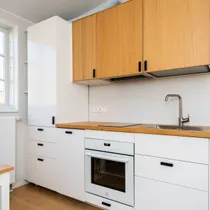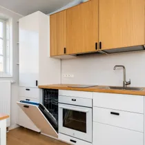 Korterisse on paigaldatud kvaliteetne köögimööbel koos integreeritud külmkapi, nõudepesumasina, ahju, pliidi ja õhupuhastajaga. Dušširuumis on pesumasin-kuivatiga, vaikselt sulguv WC-pott, termostaadiga duššisegisti ja valamu. Valgustiteks on LED lambid ning pistikud ja lülitid Schneider retro-seeriast.