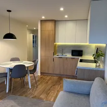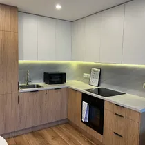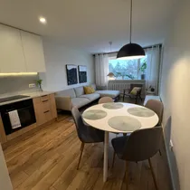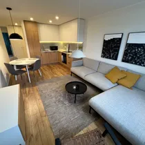 Korter on mugavalt sisustatud, nii magamistubades, kui ka esikus suured riidekapid, voodid kahes magamistoas, elutoas diivan, söögilaud ja toolid ning kõik vajalik mööbel ja tehnika köögi poolel sh nõudepesumasin, samuti pesumasin koos kuivatiga.