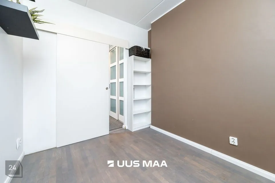 Korteris on avatud köögiga elutuba, magamistuba ja lisaruum kontori tarbeks, esik ning WC-duširuum. Suuremas magamistoas ja esikus on mahukad sisseehitatud garderoobikapid, mis muudavad igapäevaelu mugavaks ja hoiustamise lihtsaks.
