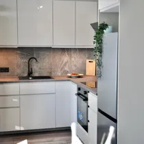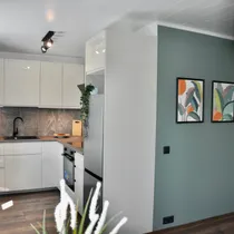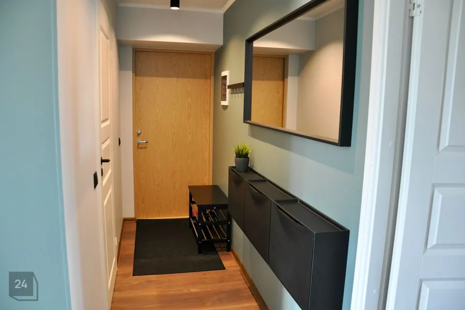 Korter on täielikult sisustatud uue modernse mööbli ja tehnikaga. Põrandatel laminaatparkett, seinad värvitud heledates toonides, millele lisavad vürtsi kontrastseinad. WC ja vannituba on plaaditud ning elektrilise põrandaküttega.