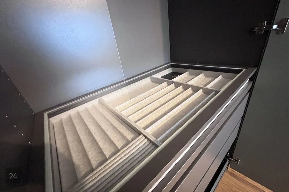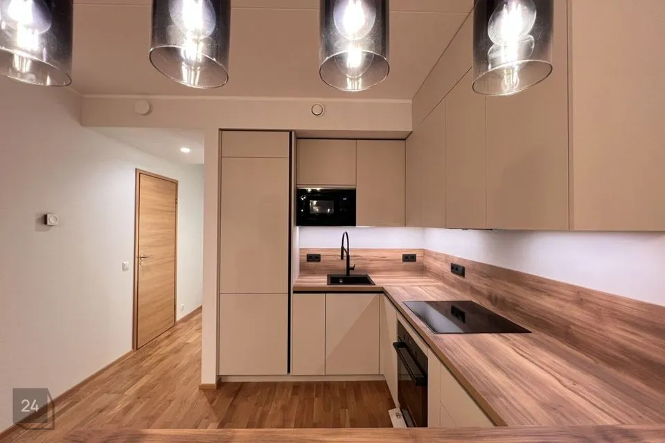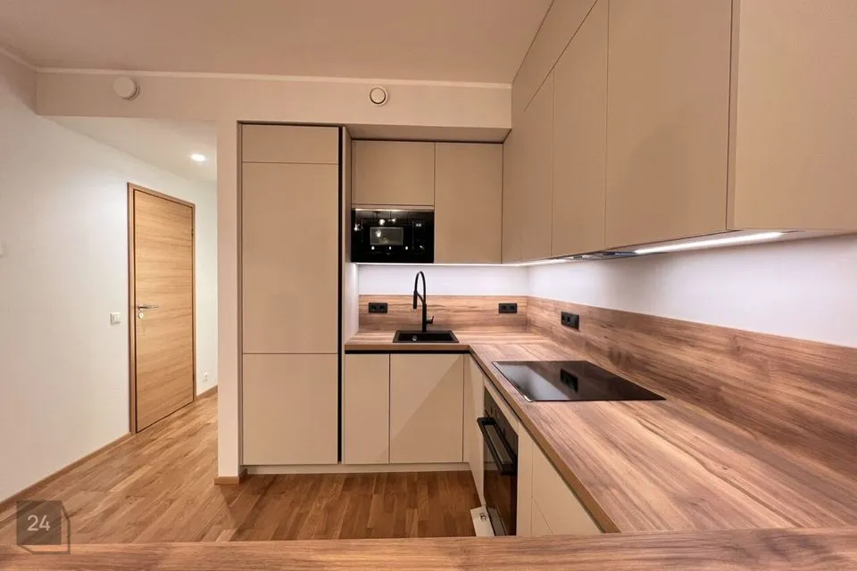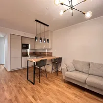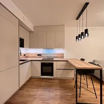 Korter on kvaliteetselt ja maitsekalt sisustatud - eritellimusel köögimööbel koos kodutehnikaga, tubade mööbel, magamistoas ja esikus sisseehitatud garderoob-kapid.