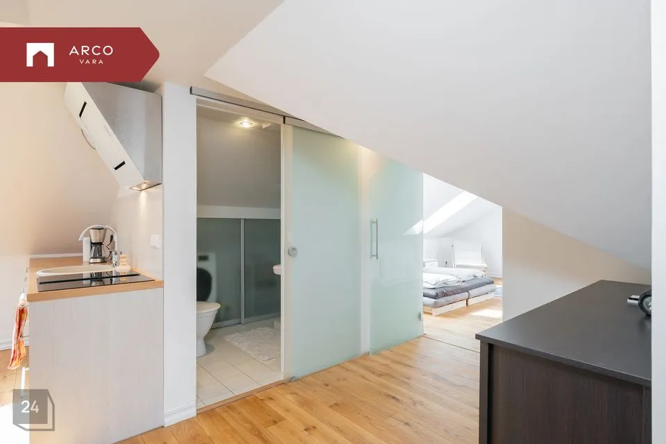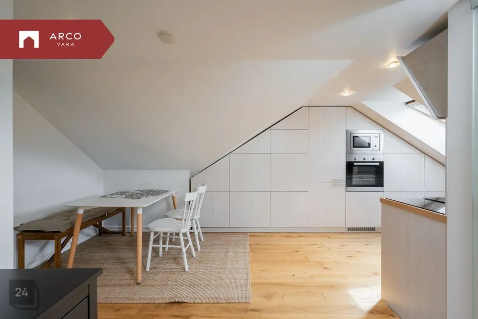 Üürile anda 2-toaline möbleeritud ja kõige eluks vajalikuga varustatud hubane ning valgusküllane korter, mis asub kolmekorruselise maja kolmandal korrusel. Tegemist on ruumika katusekorteriga (63,5 m2), millele lisaks on veel 14,4 m2 suurune terass. Terrassilt avanevad kaunid vaated Supilinnale.