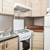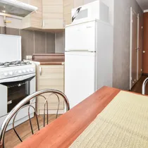 Köögis kaasaegne köögimööbel, külmkapp, gaasipliit. Elutoas lahtikäiv diivan, TV laud, vitriinkapp, magamistoas voodi, .