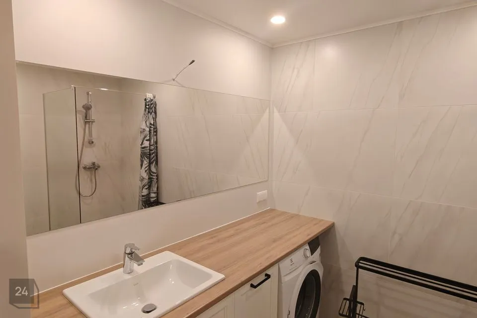 -Vannituba suure peegli, duššinurga ja pesumasinaga.