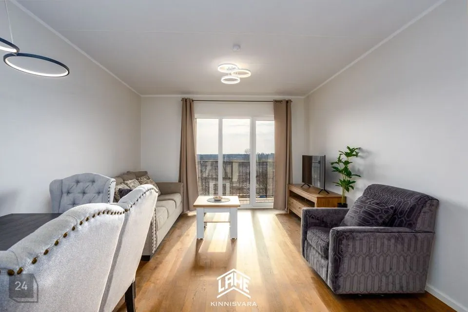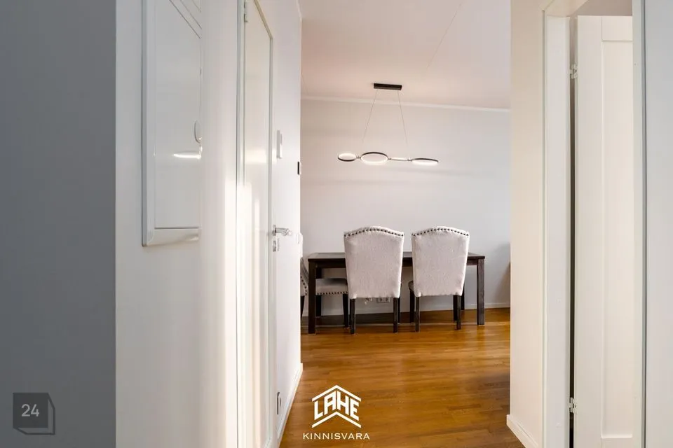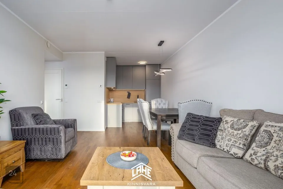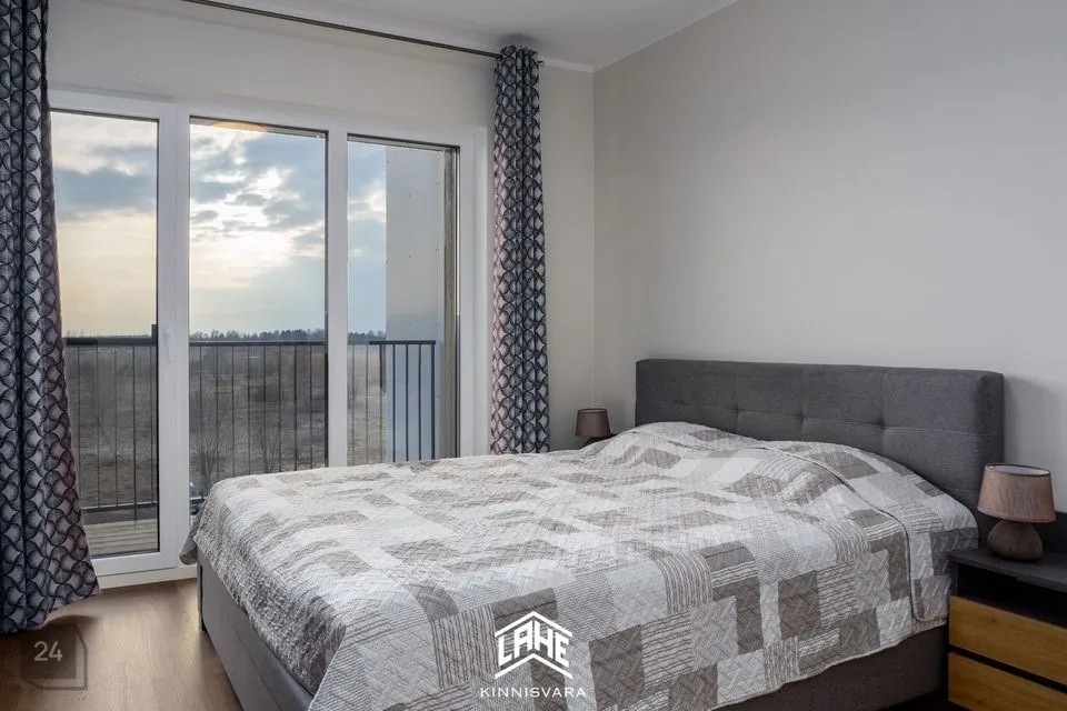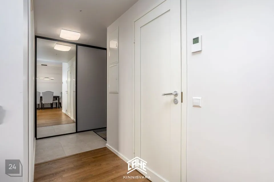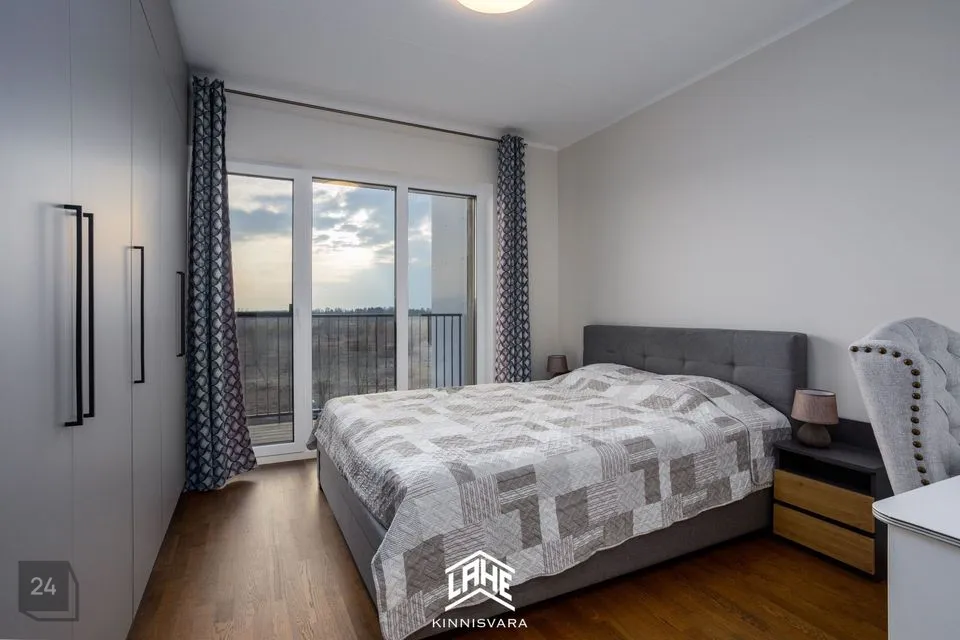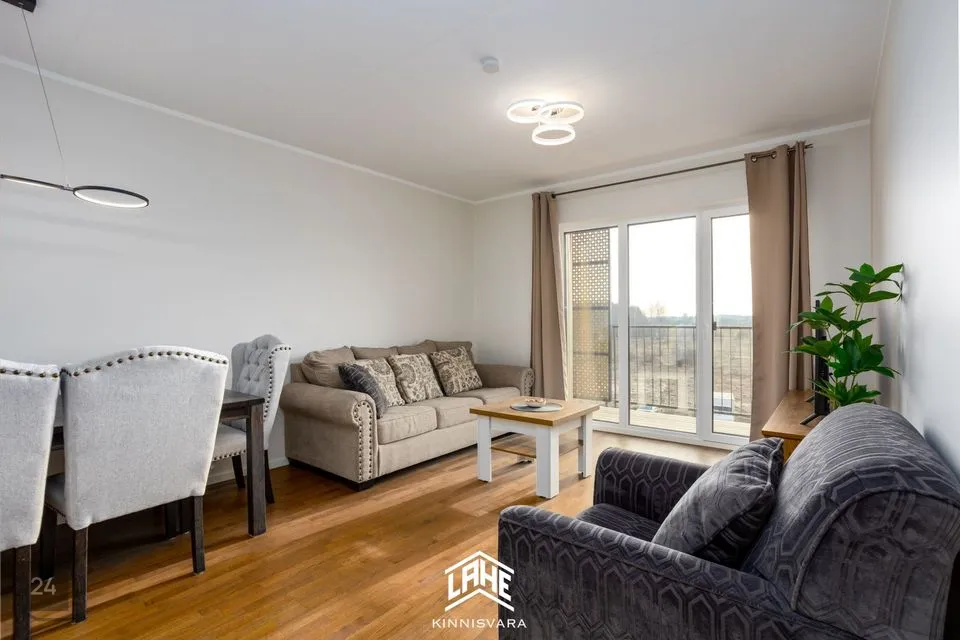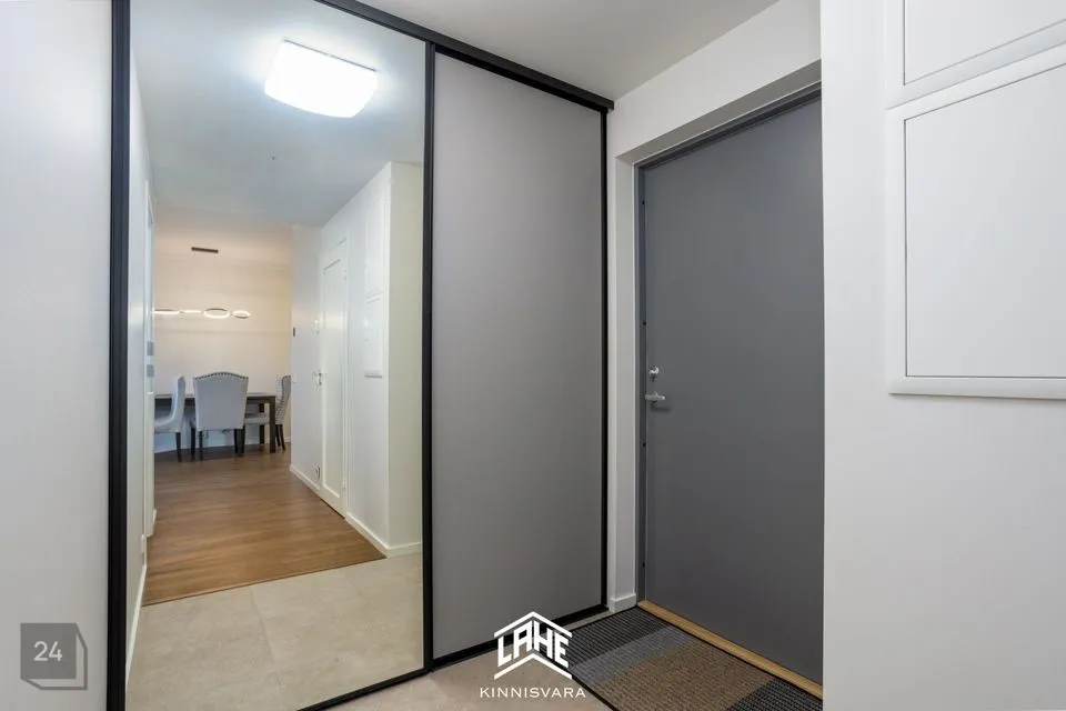 Kahetoaline suure rõduga kolmanda korruse korter on vaikne ja valgusküllane. Korteri ruumilahendus on avar: koosneb garderoobidega varustatud esikust ja magamistoast, uue köögimööbliga ja tehnikaga köök-elutoast ning vannitoast. Vannitoa ja esiku põrandaid katab kiviplaat, tubades on tumedat tooni naturaalparkett.