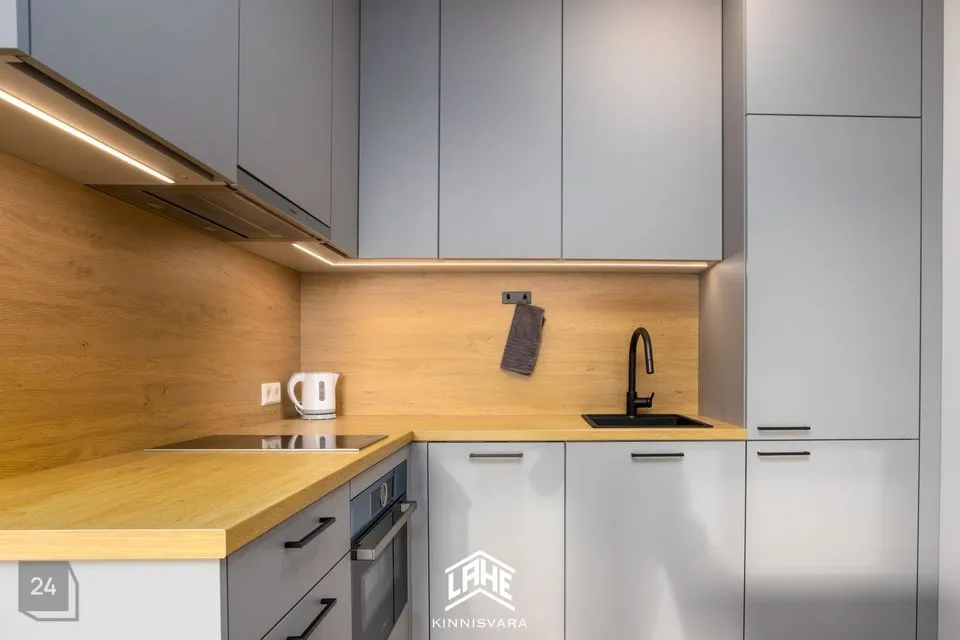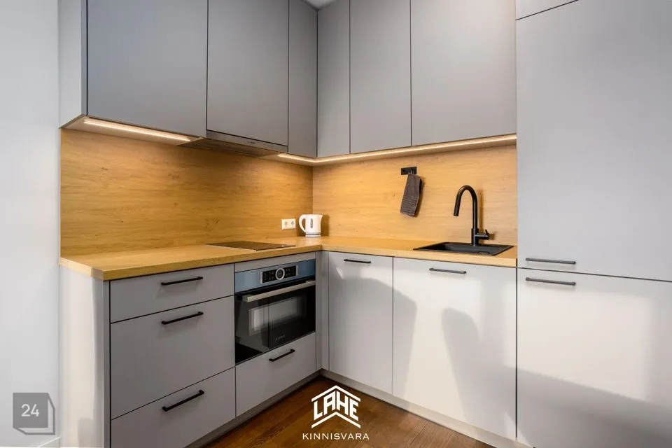 Elamine on täielikult sisustatud: äsja paigaldatud kaasaegne köögimööbel koos kvaliteetse Bosch tehnikaga (sh nõudepesumasin, induktsioonpliit), samuti uued sisseehitatud garderoobikapid magamistoas ja esikus. Elutoas on lahtikäiv diivan, diivanilaud, teler koos kummutiga. Magamistoas on lisaks mahukale garderoobikapile hoiukastiga kontinetaalvoodi. Lisaks on olemas tolmuimeja ning muu esmane eluks vajalik (tekid, padjad, sööginõud, toidu valmistamise tarvikud).