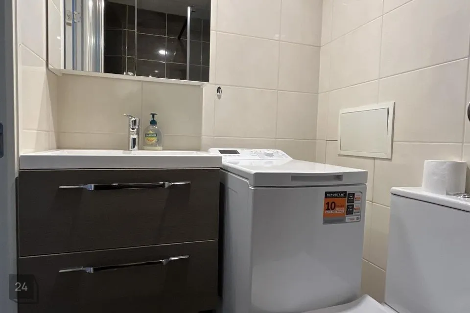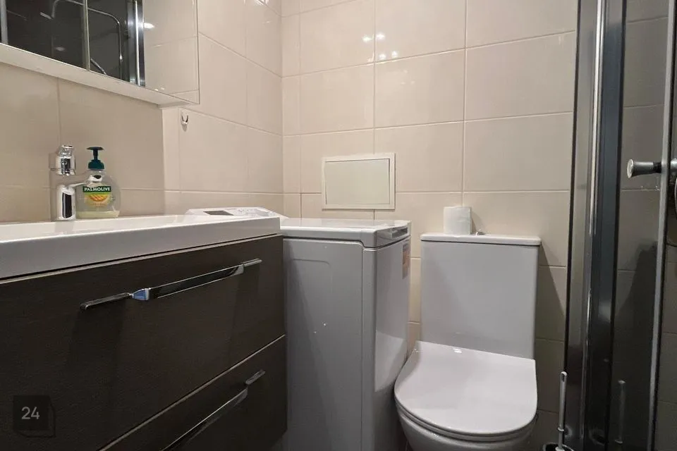 Köögimööbel ja köögitehnika, sh gaasipliit ja külmkapp, vannitoas pesumasin jms.