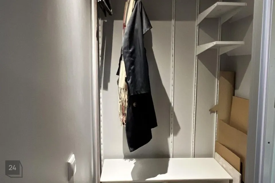 Kahe toa vahel asub väike garderoob, mis mahutab mugavalt hooajariideid ja majapidamistarvikuid