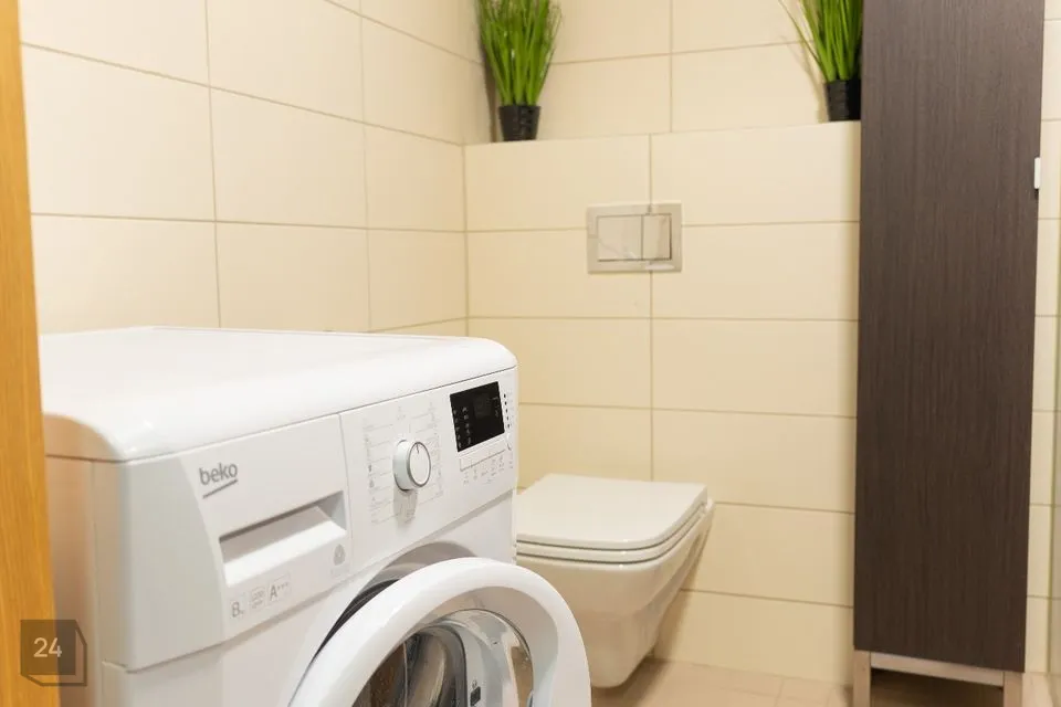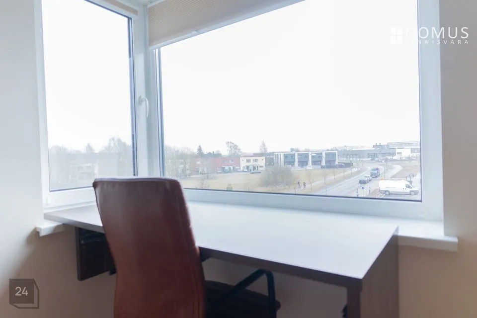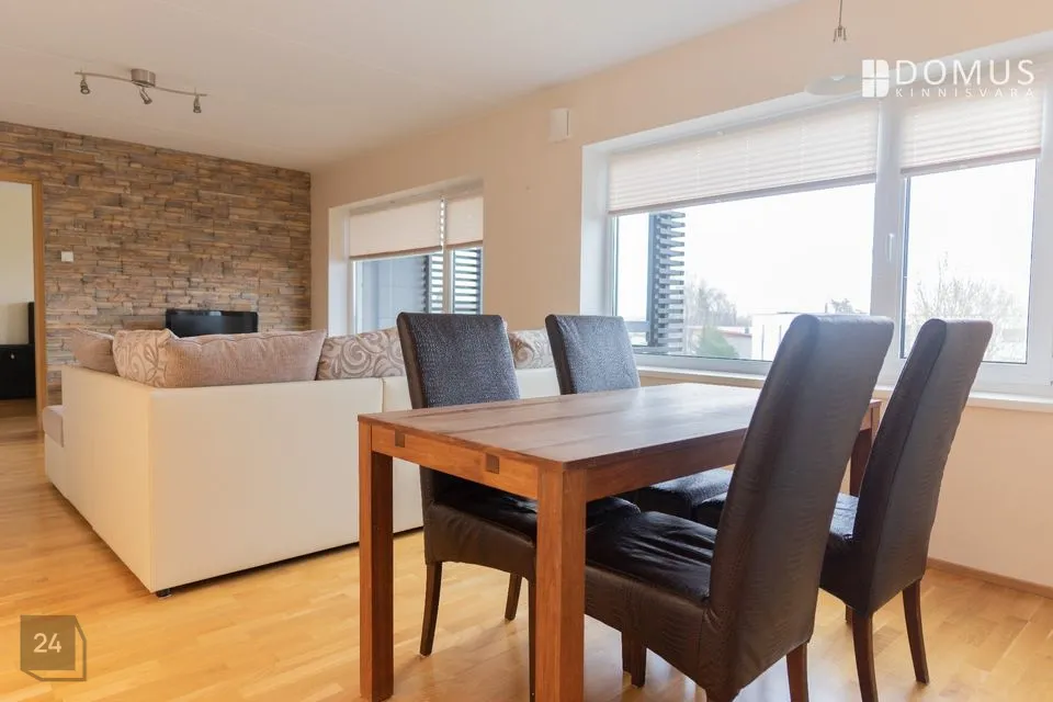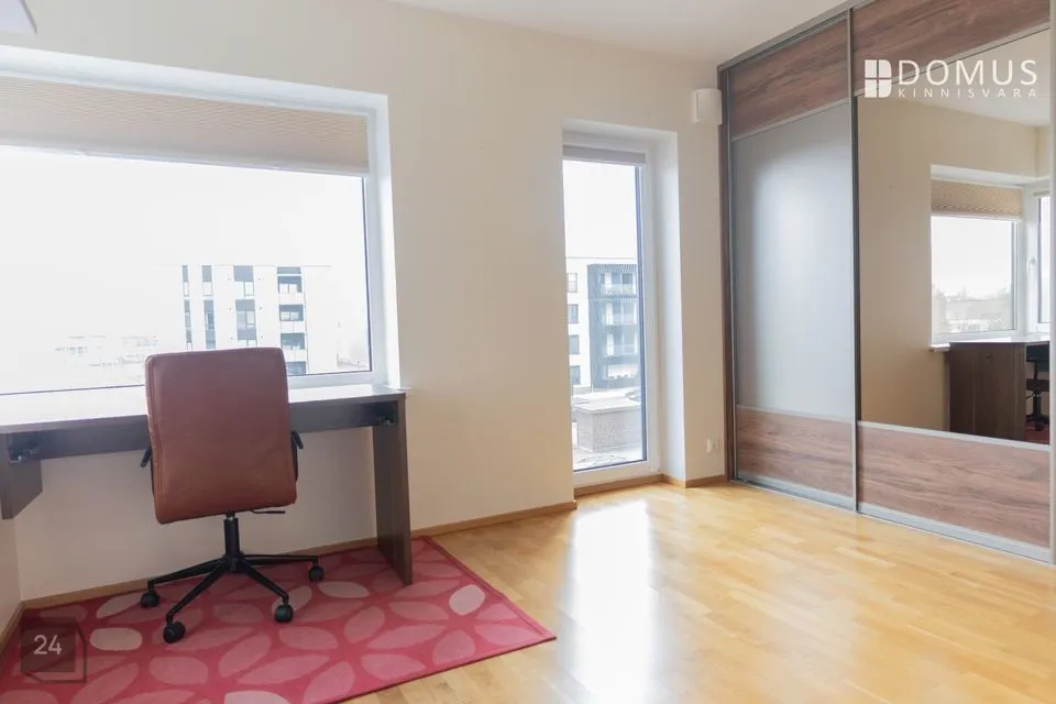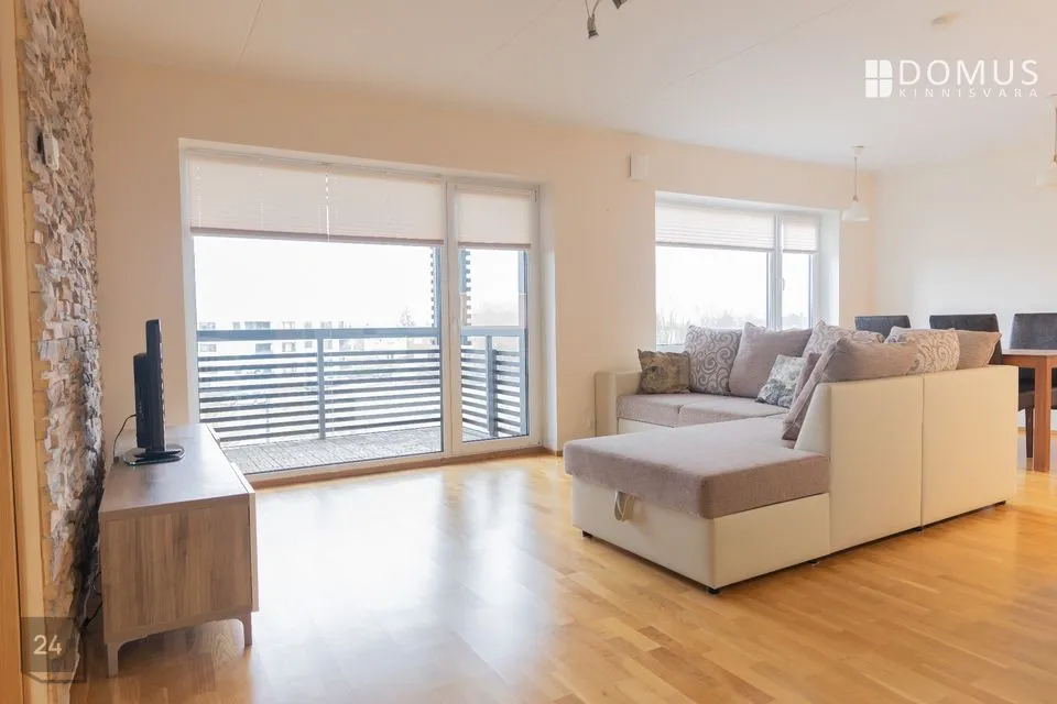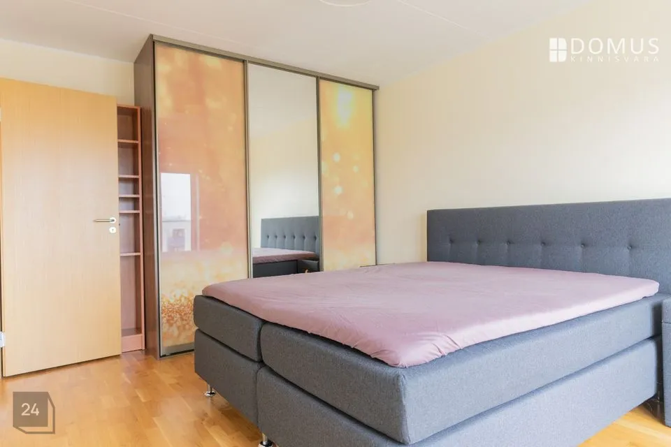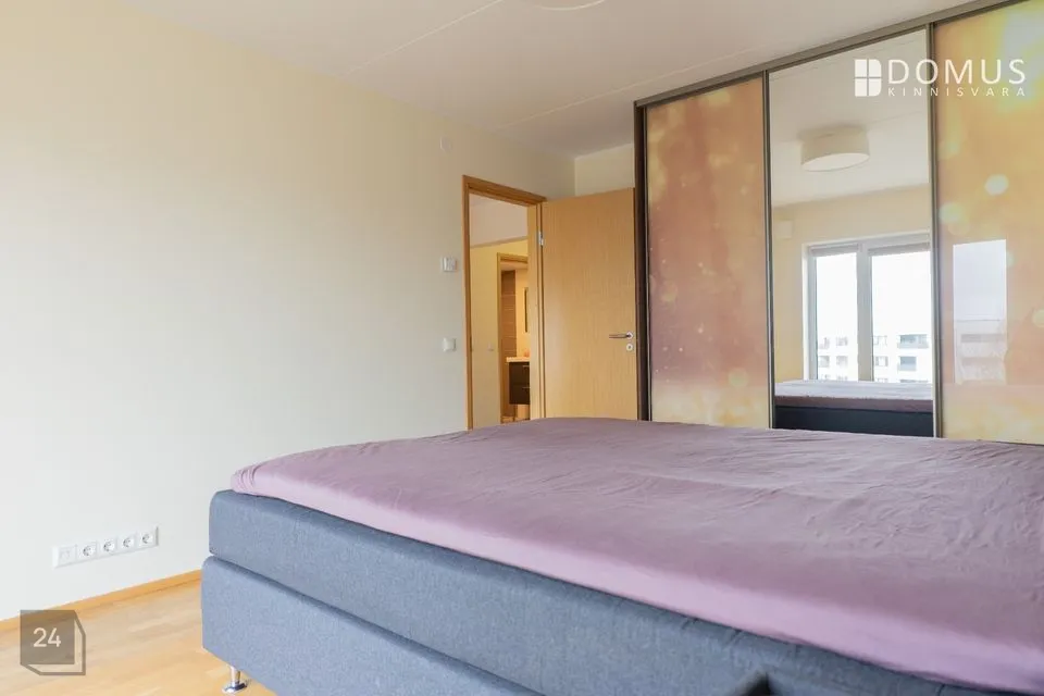 Lisaks pesumasin, diivan, söögilaud toolidega, TV, teises magamistoas kontorilaud tooliga ning liugustega garderoobikapid mõlemas magamistoas ja koridoris. Korteri juurde kuulub ka suur 5 m² rõdu.