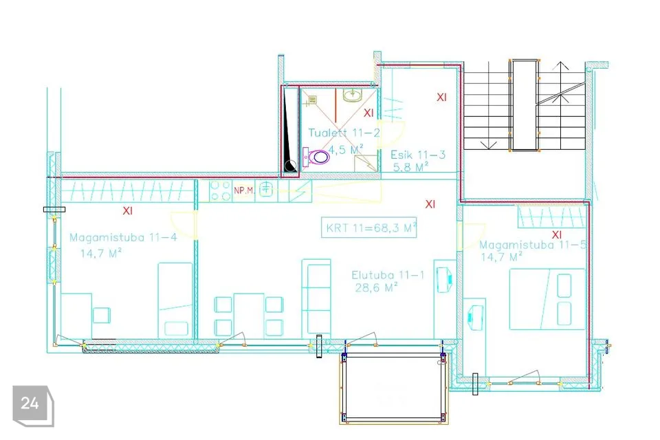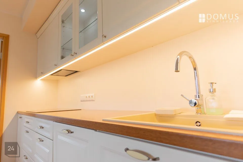 Uus üürnik saab möbleeritud korteri, sisse jääb piltidel olev mööbel ja tehnika. Korteris on eritellimusel valmistatud köögimööbel koos integreeritud tehnikaga (elektriline ahi, keraamiline pliit, õhupuhasti, suur nõudepesumasin ja külmkapp.