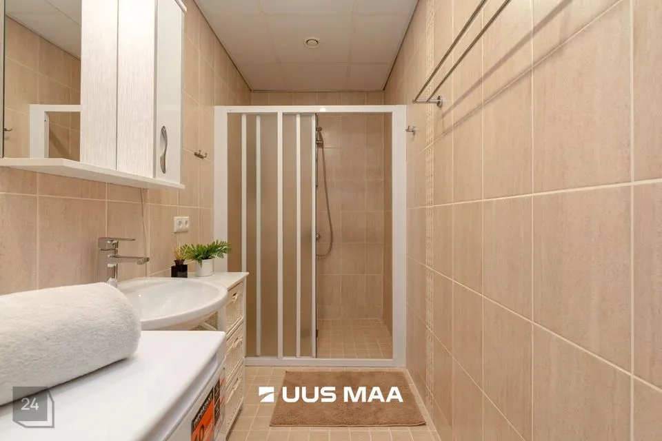 Ruumilahenduslikult on korteris esik, avatud köögiga elutuba, magamistuba, suur duširuum ning tualett. Korteri köetav pind on 34.80 m².