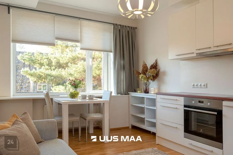 Korterisse jääb fotodel nähaolev mööbel ja köögimööbel koos integreeritud tehnikaga (pliit, ahi, õhupuhasti, külmik, pesumasin).