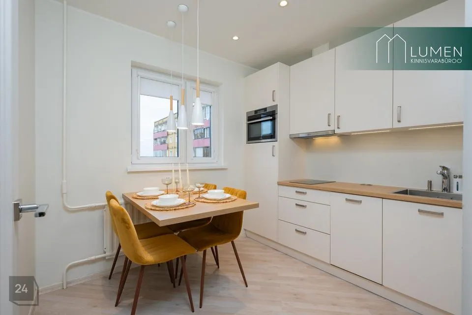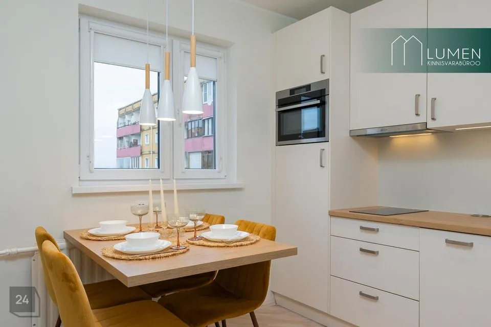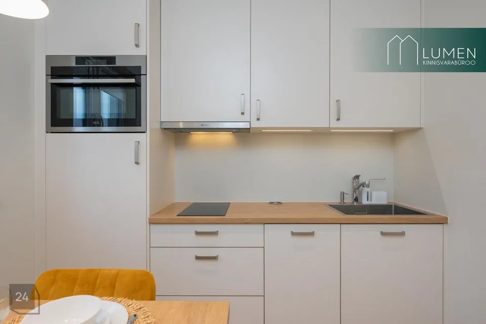 Paigaldatud on uus kvaliteetne köögimööbel koos tehnikaga.