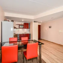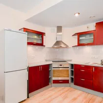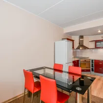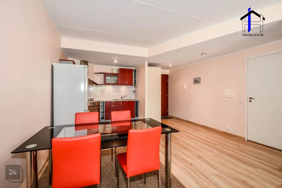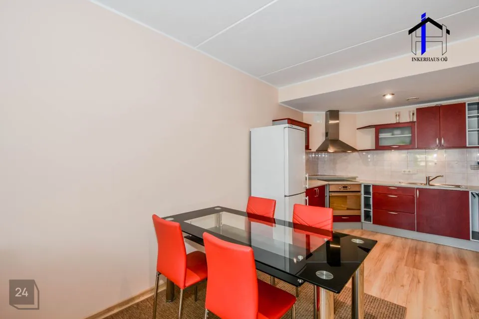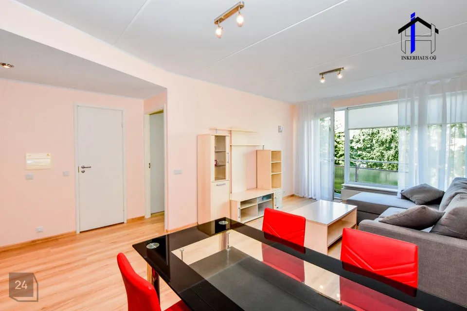 Korteris olemas kaasaegne köögimööbel koos tehnikaga (elektripliit/ahi, külmkapp, õhupuhasti), söögilaud koos toolidega. Toad möbleeritud. Duširuumis olemas pesumasin.