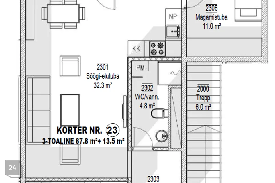 Planeeringult on korteris elutuba koos kööginurgaga, garderoobiga esik ja lisaks aknaga panipaik korteri sees, 2 magamistuba, vannituba ja 13,3 m² suurune rõdu , mis on vaatega sisehoovi ja rohealale.