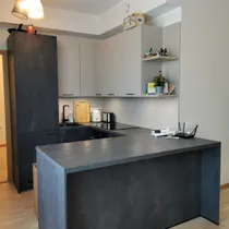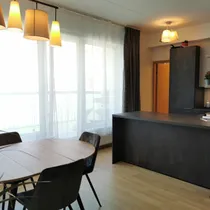 Elamispind on sisustatud kaasaegse köögimööbli ja kodutehnikaga (pliit, ahi, külmkapp, õhupuhastaja, nõudepesumasin, pesumasin). Lisaks on üürniku kasutusse soetatud magamistuppa voodi koos kapiga ja elutuppa nurgadiivan ning söögilaud, ühe magamistubadest saab elanik sisustada oma soovi järgi (pildil nähtav arvutilaud ja tool ei kuulu pakkumisse). Ühtset stiili täiendavad valgustid ja rulood.