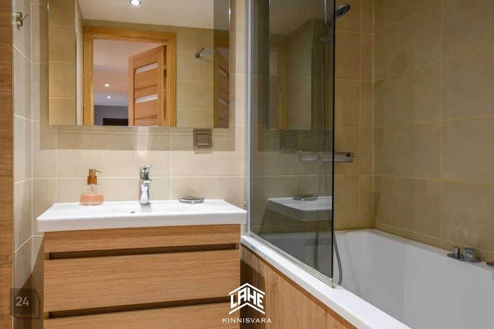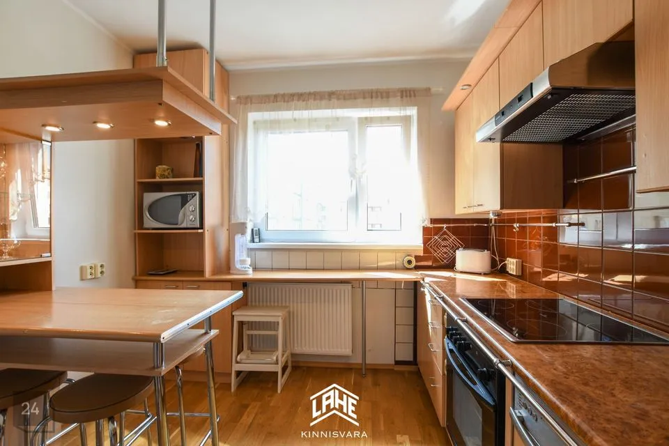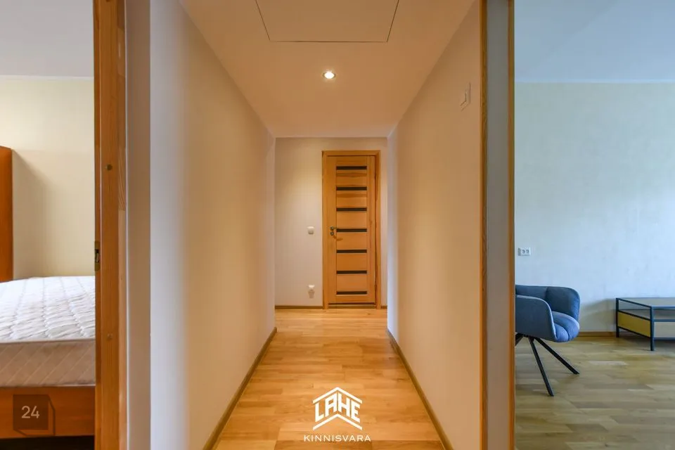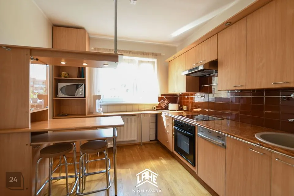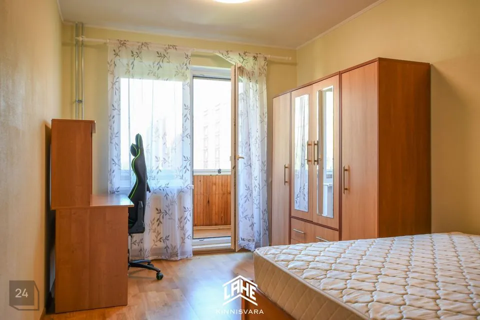 Tegu on osaliselt möbleeritud korteriga, kus üürniku kasutusse jääb kõik piltidel nähaolev sisustus. Sealhulgas uus pesumasin, integreeritud tehnikaga ning nõudepesumasinaga köögimööbel, elutoa laud, diivan ja TV alus. Magamistubades kaks voodit, riidekapid, kirjutuslaud.