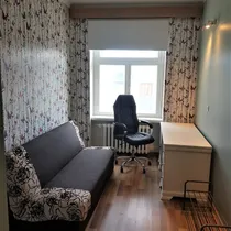 Room in a shared flat in the city center for students! The rooms have table, wardrobe, chair, sofa bed. The shared kitchen has microwave, oven, 2 fridges, washing machine. The flat has two shared bathrooms. The flat is located in the centre of the city, same street with the university Tartu Ülikool, only some hundred meters away from the main building.