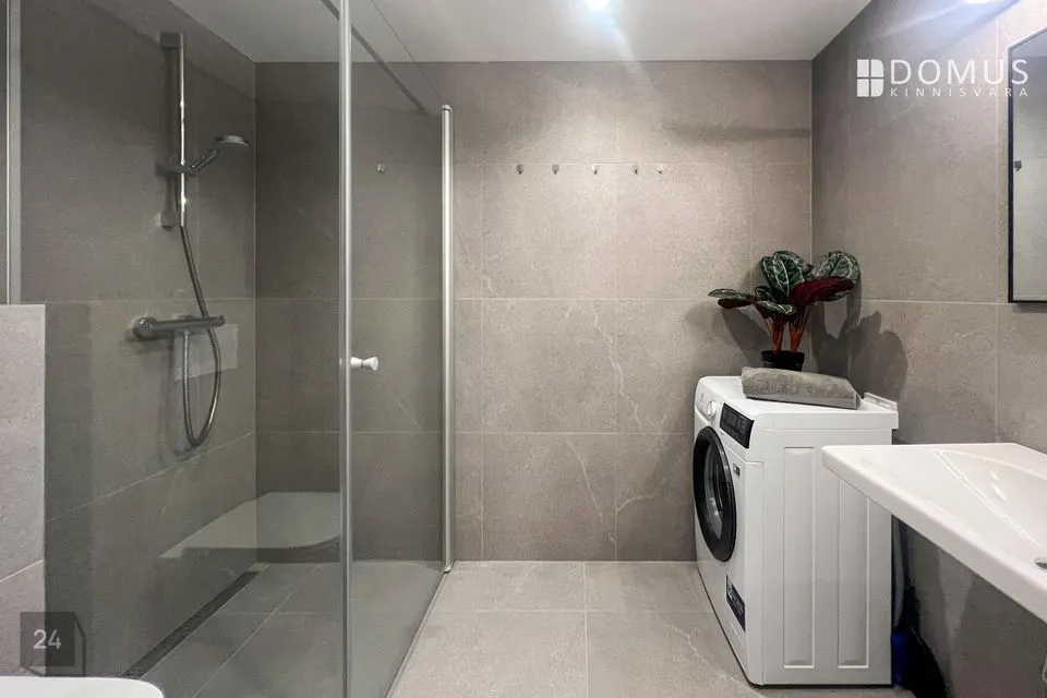 Avar vannituba ja maitsekas vannituba kuhu paigutatud kvaliteetne pesumasin