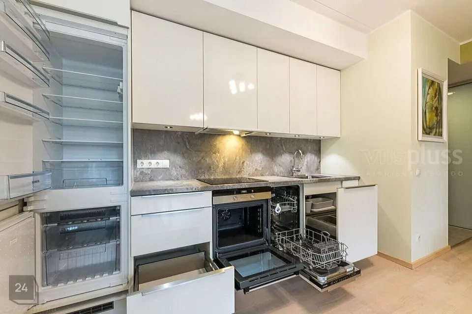 Korteris on olemas kõik vajalik kodutehnika: külmik, nõudepesumasin, induktsioon pliit, ahi, kubu ja pesumasin koos kuivatiga. Kaks integreeritud garderoobi kappi. Lisaks saab asjade paigutamiseks kasutada puhast ja tolmuvaba panipaika keldris.