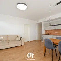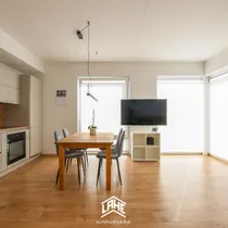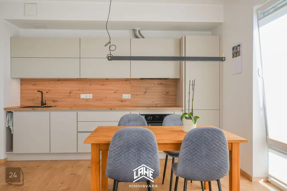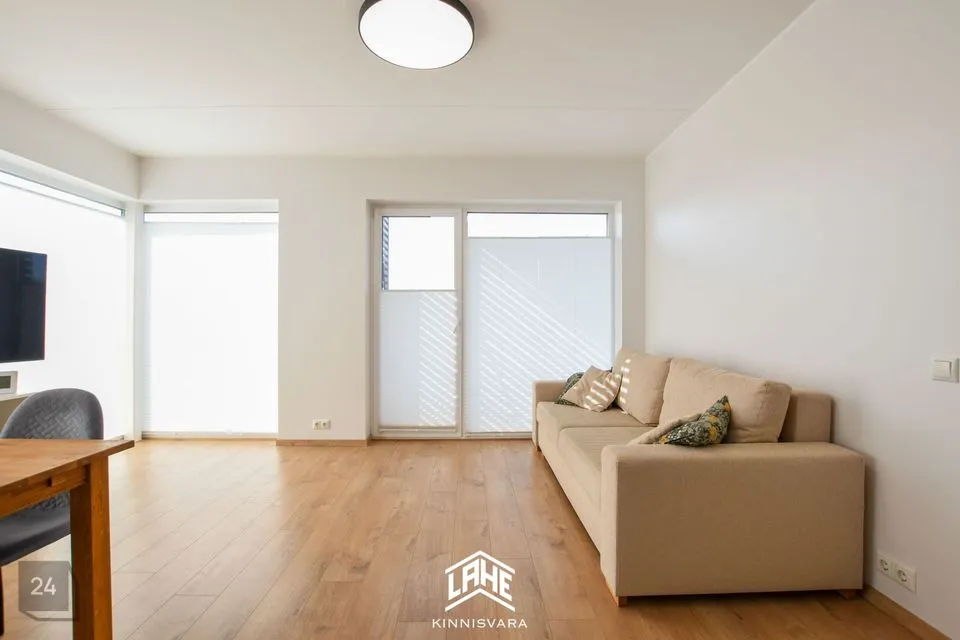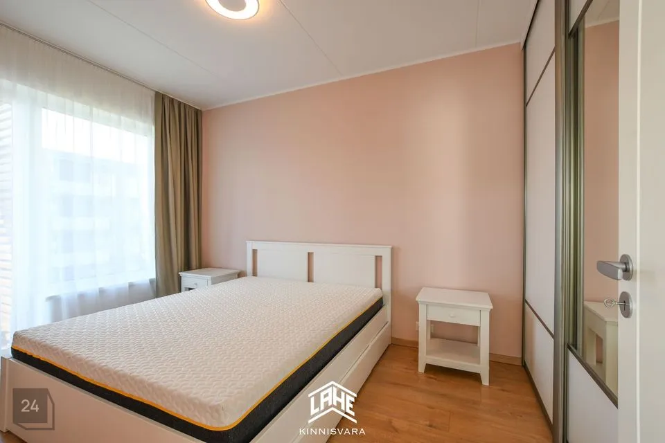 Kolmetoaline kolmanda korruse korter on peaaegu täielikult kõige vajalikuga varustatud - uuel üürnikul jääb iseseisvalt täita väiksem magamistuba. Piltidel nähtav sisustus ja tehnika jääb uue üürniku kasutada. Sealhulgas on olemas lisaks kohtkindlale mööblile pesumasin, voodi, diivan koos söögilaua ja toolidega.
