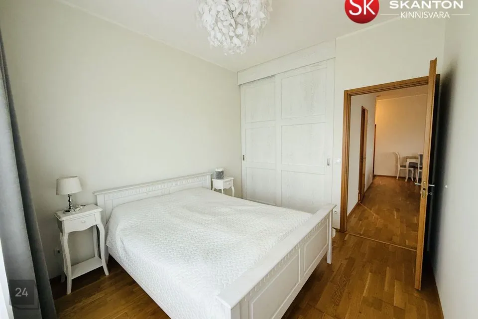 Korter on heas seisukorras ja üürile antakse täielikult sisustatuna. Köögis on kvaliteetne Arens mööbel koos tehnikaga (külmik, nõudepesumasin, ahi, pliit, õhupuhasti). Vannitoas on klaasseintega dushikabiin, Grandberi sisustus ja pesumasin. Magamistoas liugustega garderoobikapp ning fotodelt nähtav mööbel (diivan, voodi, lauad jmt).