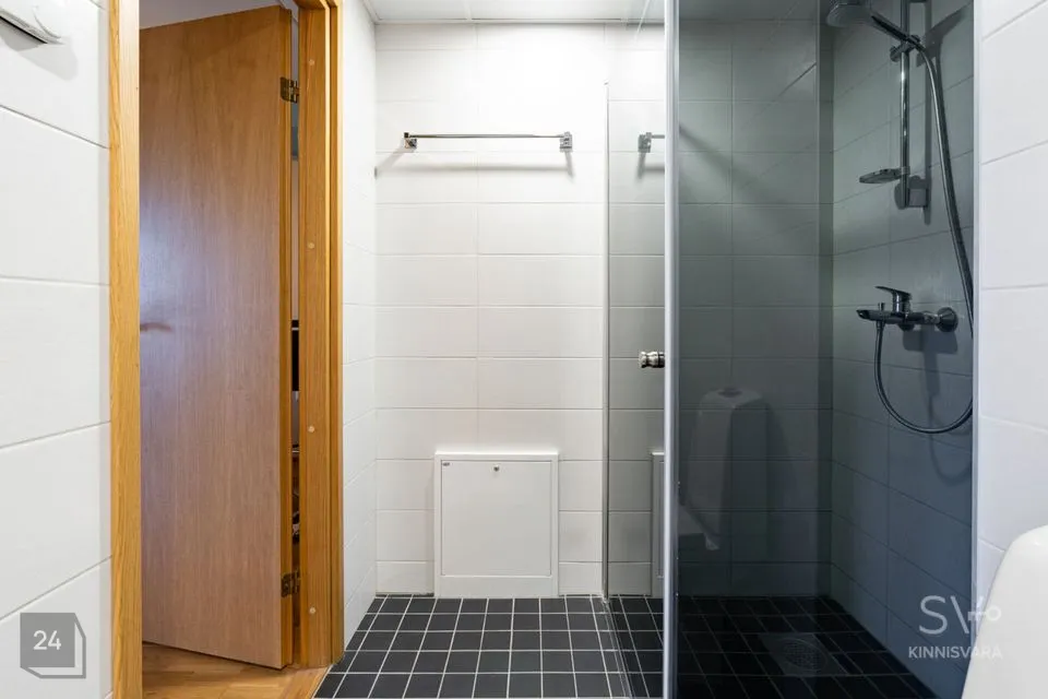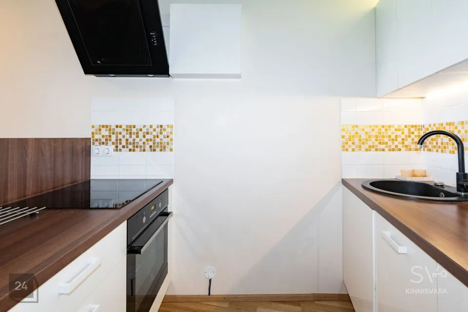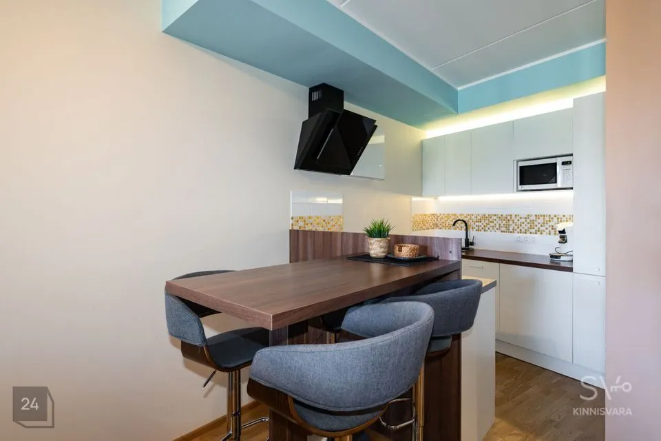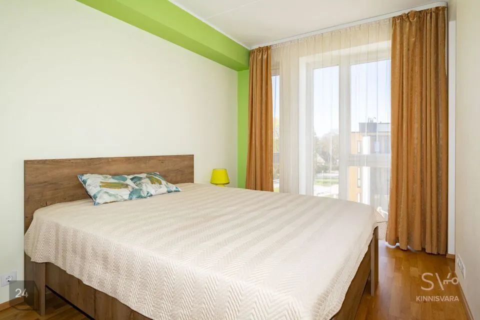Viimistluses on kasutatud kvaliteetseid materjale – naturaalne tammeparkett ja keraamilised plaadid vannitoas loovad sooja ja modernse tunde.