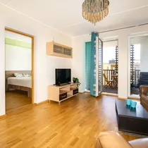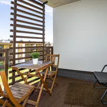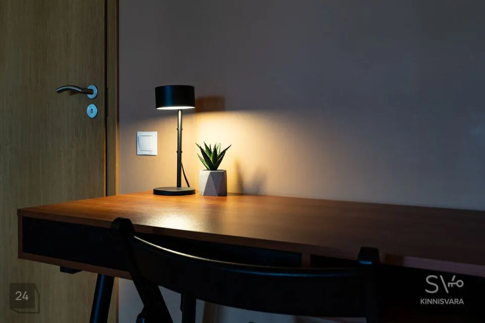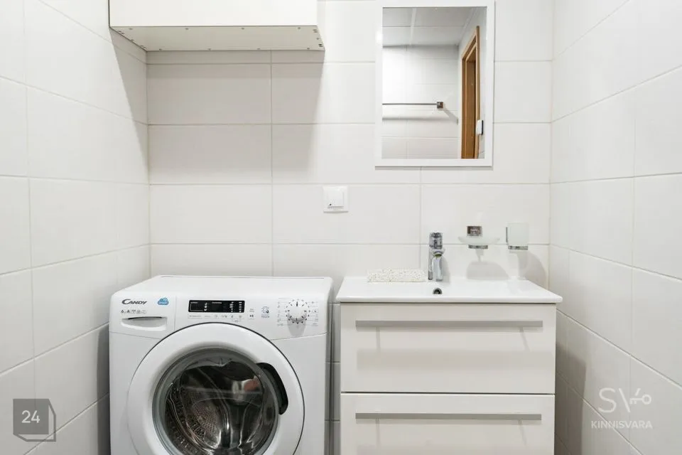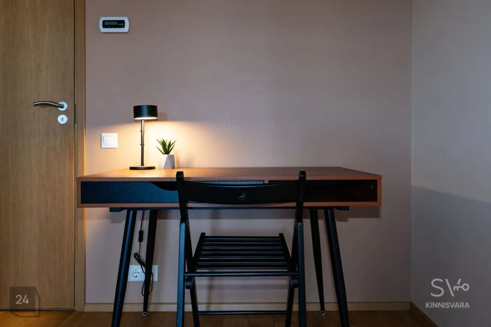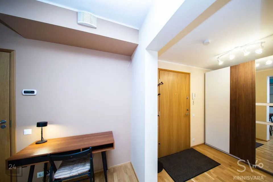 Korter on täielikult sisustatud ning varustatud kõikide vajalike kodumasinatega (sh nõudepesumasin, pesumasin, külmik, pliit, ahi, mikrolaineahi, õhupuhasti, veekeetja, TV).