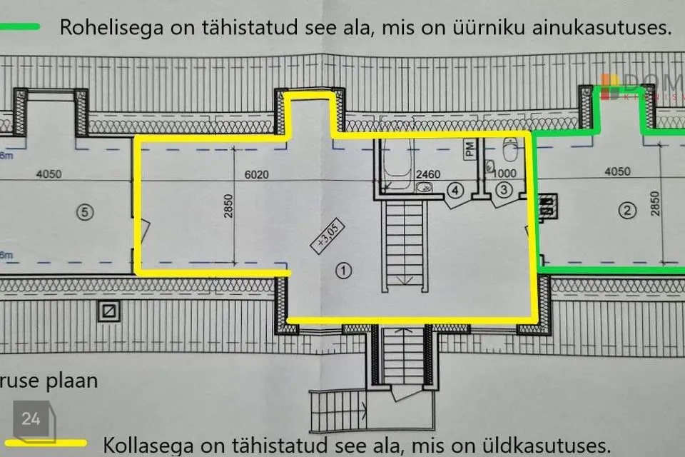 Esimesel korrusel saab ühiselt kasutada kööki, wc-d ja esikut.