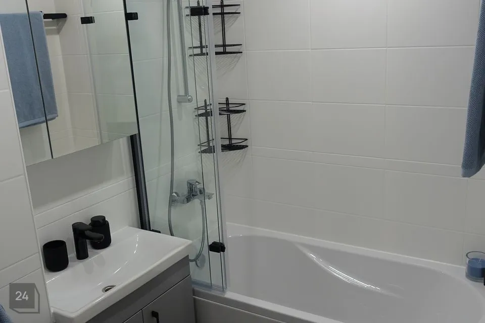 Vannituba: põrandaküte, vann, Bosch pesumasin, peegelkapp, kraanikausikapp.