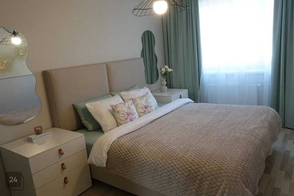 2 magamistuba: kummut, 180x200 cm madrats, riidekapp.