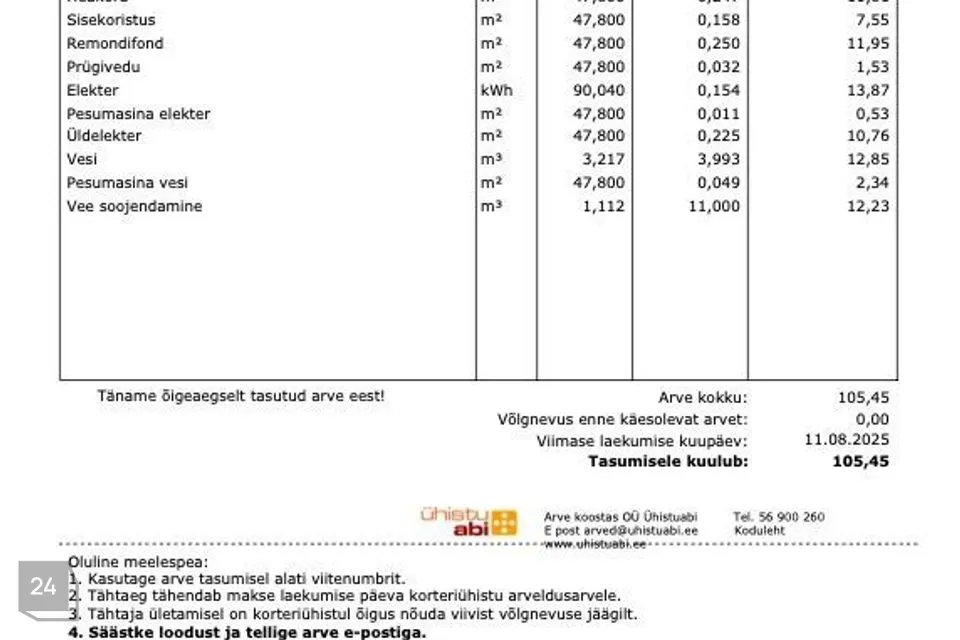 Üürilepingu sõlmimisel tuleb üürnikul tasuda ette esimese kuu üür 625 €, tagatisraha 625 € ja lepingutasu 315 €.