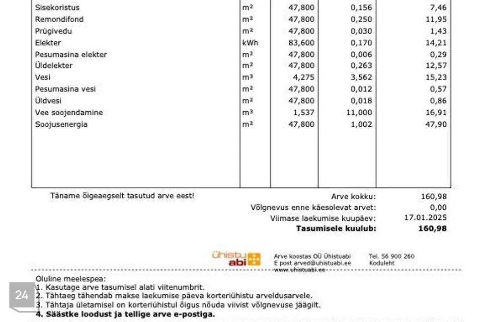 Madalad kommunaalkulud: suvel ~100 € ja talvel ~160 €.