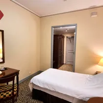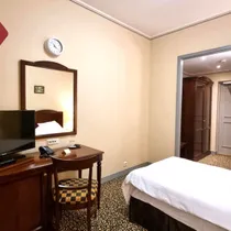 Toas on olemas voodi, kirjutuslaud, televiisor ja internet ning väike külmkapp.