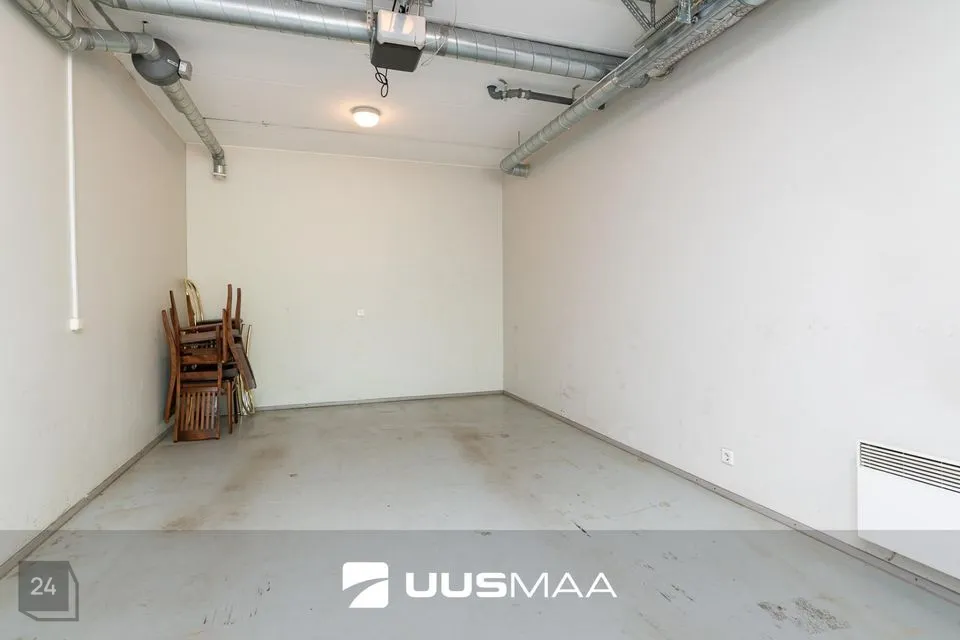Korteri juurde kuulub mahukas ja privaatne garaaž hoone esimesel korrusel ning lisaks veel üks parkimiskoht hoone õuealal.
