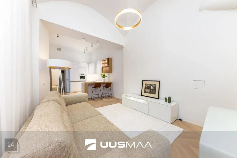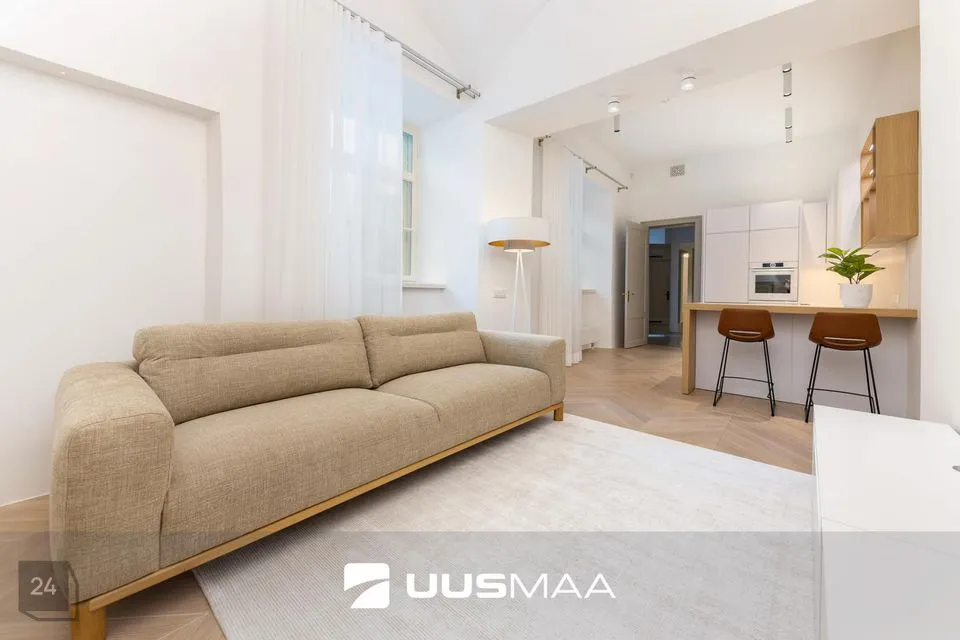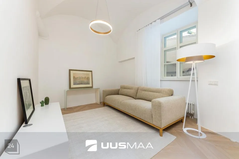 Üürile anda luksuslik, privaatse hoovipoolse sissepääsuga 2-toaline korter äsja renoveeritud keskaegses hoones aadressil Lai 13 / Suur-Kloostri 1.