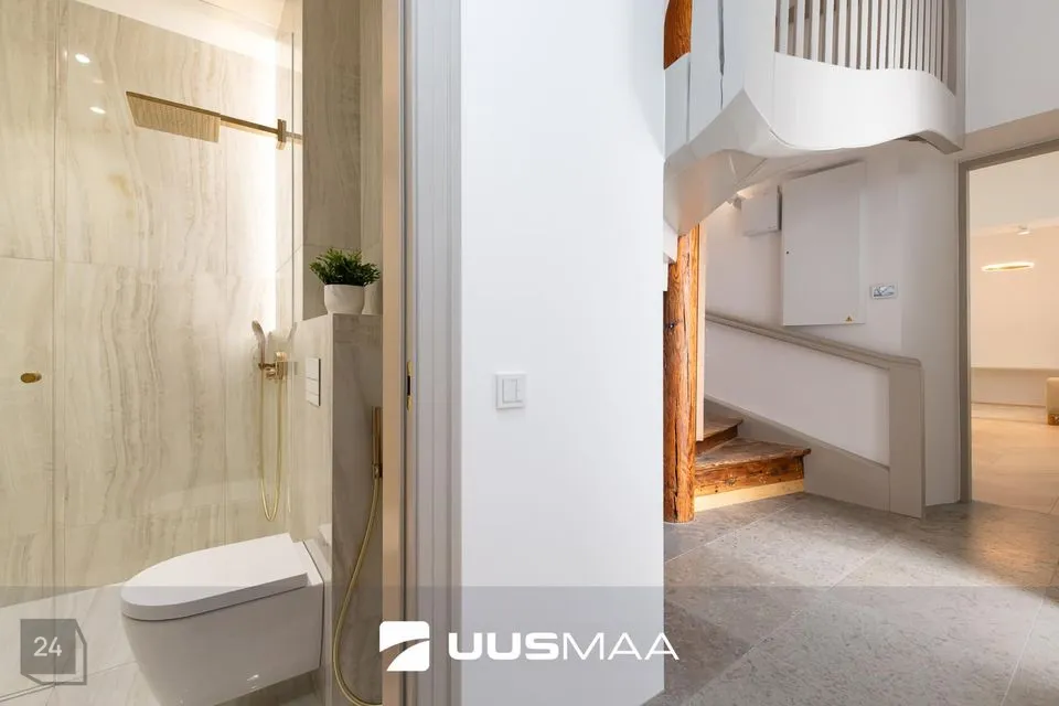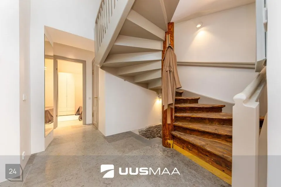 Korteri tube eraldab kaunis keskaegne keerdtrepp, mida on sobiv soovi korral kasutada näiteks raamatukoguna.