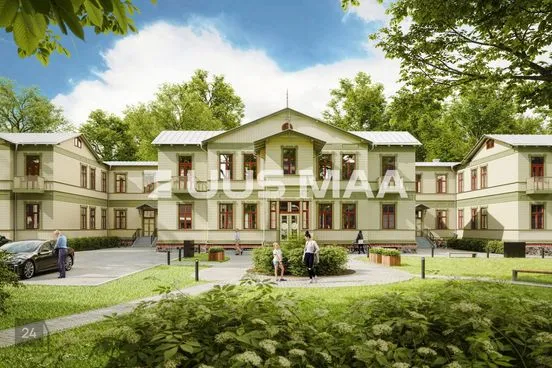 Kõrgete lagedega korter mõisalikus pargis, vaade linnale