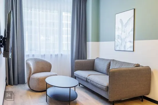 Anname üürile kaasaegse korteri südalinnas. Korter on täielikult sisustatud, varustatud mööbli ja kodutehnikaga. Korteris on olemas kõik vajalik, et tunneksid end nagu kodus: tasuta Wi-Fi, nuti-TV, konditsioneer, täisvarustuses kööginurk, pesumasin ja 24/7 turvateenus. River