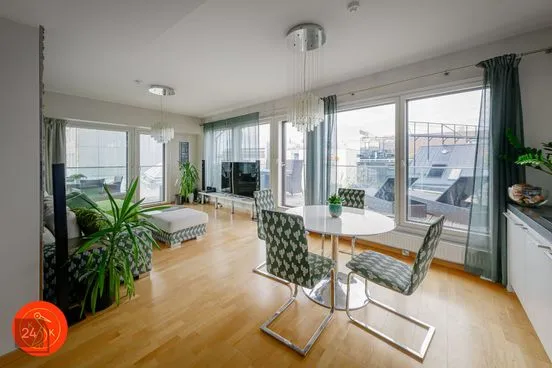 Üürile anda 3 magamistoaga 4-toaline korter kesklinna südames, Narva mnt 15 majas. Korter asub 3.korrusel, on valgusküllane ja funktsionaalse ruumilahendusega- kõik toad asetsevad eraldi. Kahe magamistoa aknad avanevad hoovi poole, elutoa ja ühe magamistoa aknad tänava poole.
