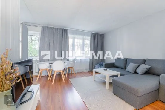 Korter koosneb esikust, köögist, elutoast, vannitoast, WC-st ja magamistoast. Ühele rõdule pääseb köögist ja