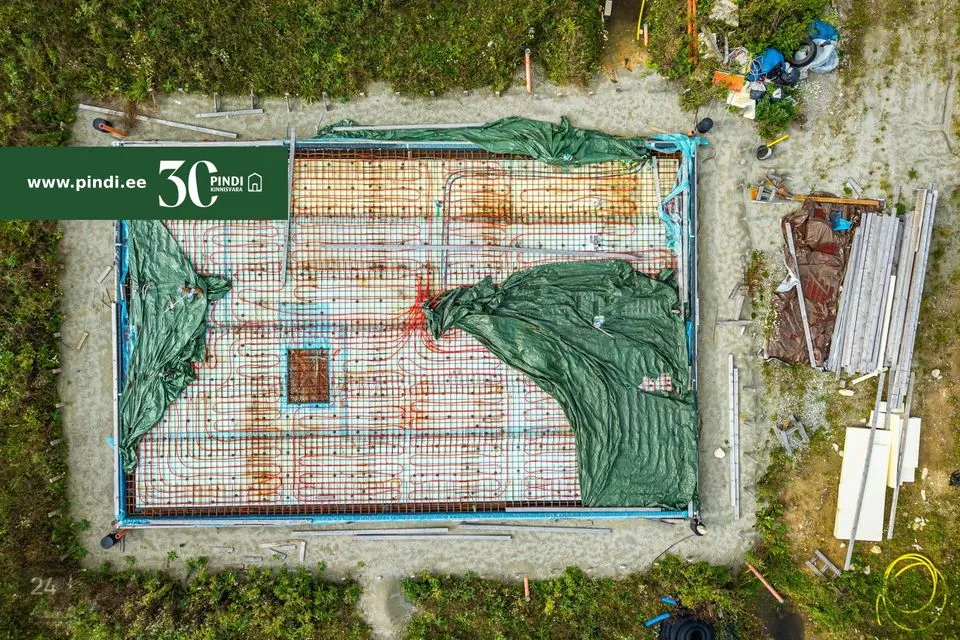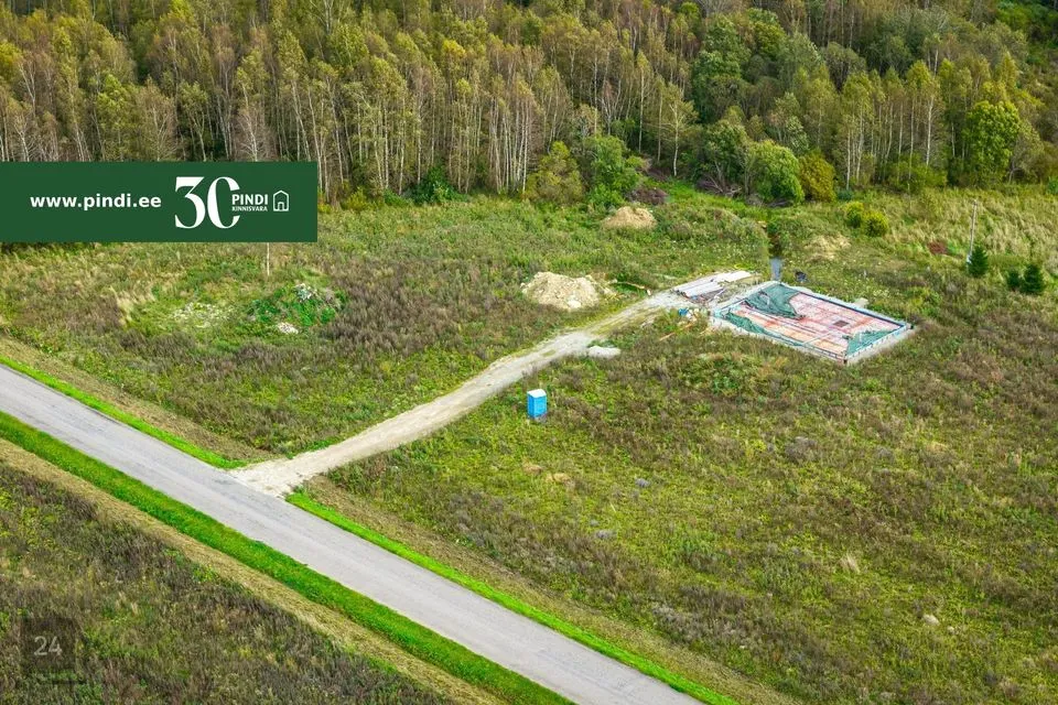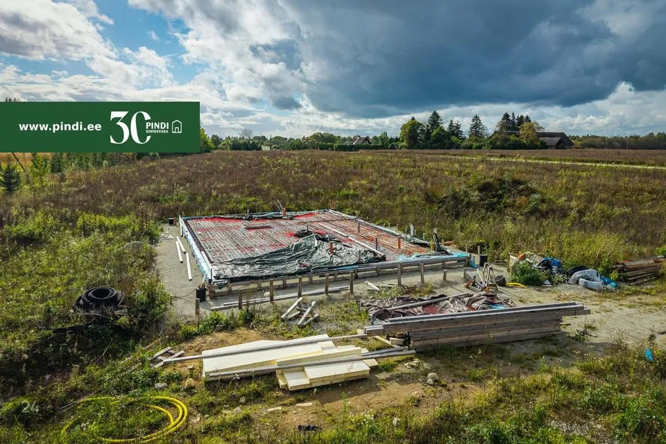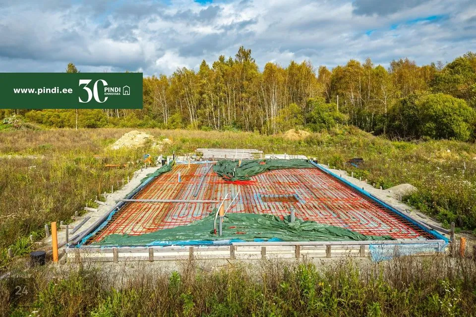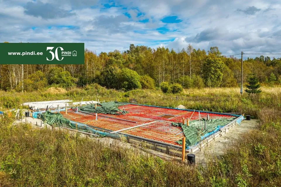 Müüa vundamendiga kinnistu. Kinnistule väljastatud projekteerimistingimused eramu ja abihoonete püstitamiseks. Kinnistule on juba rajatud raudbetoonist plaatvundament koos põrandakütte kaabliga. Hoone projektijärgne suletud netopind 119.1 m2. Vastavalt ehitusprojektile on hoone kandekonstruktsioon kivist ja välisseina viimistlus puidust. Katusekatte materjaliks plekk ning soojusallika liigiks õhk-vesi soojuspump ja kamin