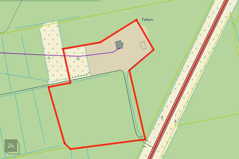 Üksik talukoht keset metsa mahasõiduga Via Baltica maanteelt