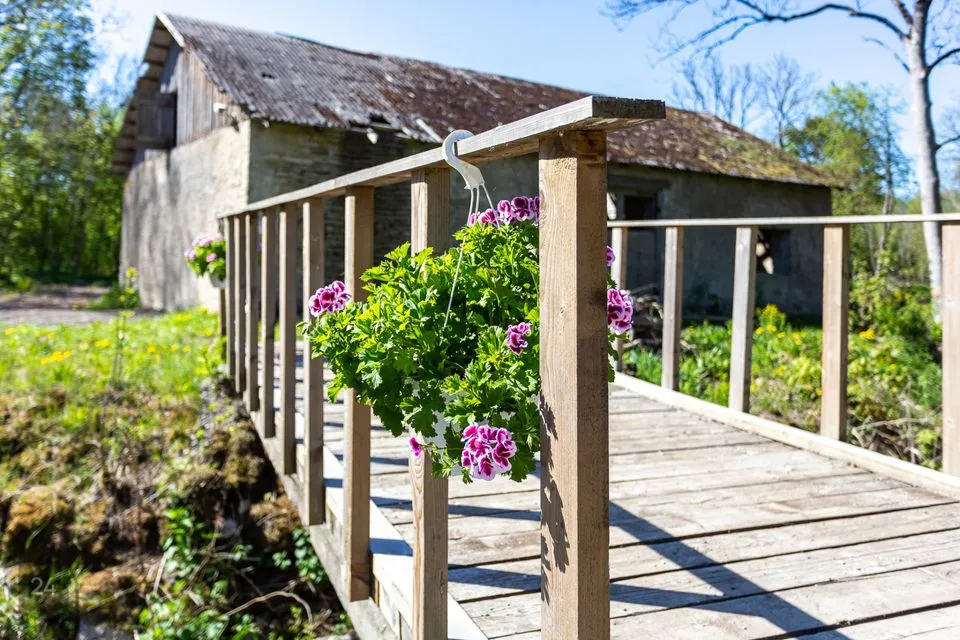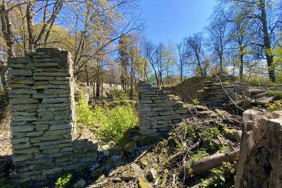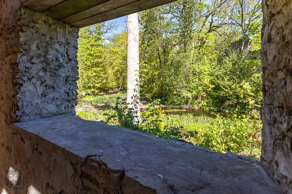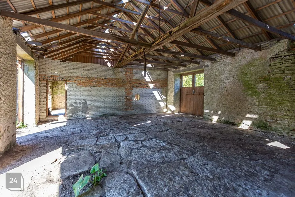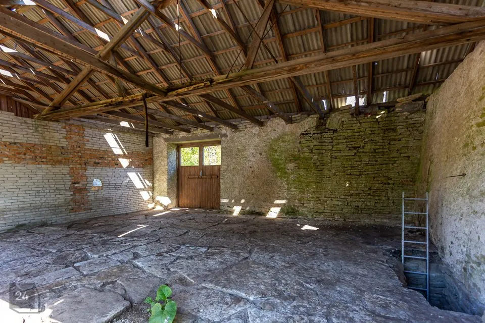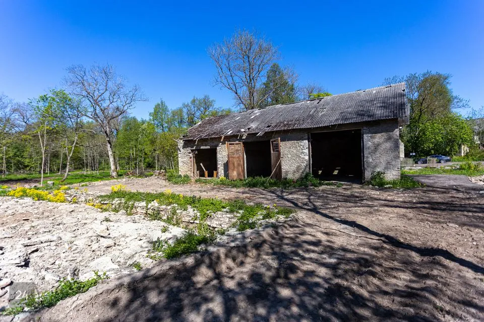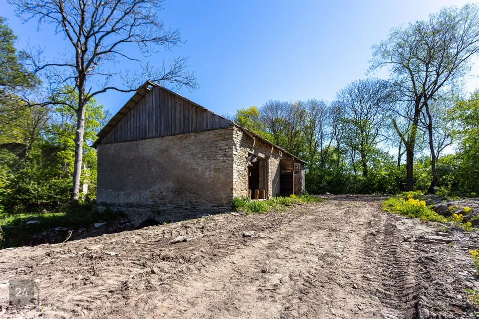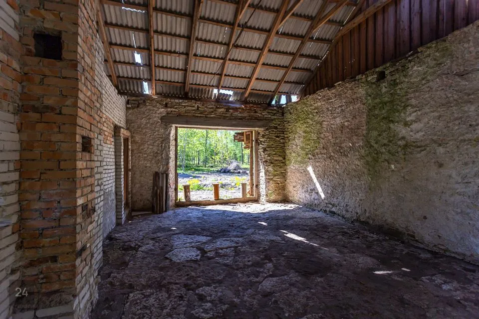 Saarel asub paekivist üle meetrilaiuste seintega endine mõisa abihoone.