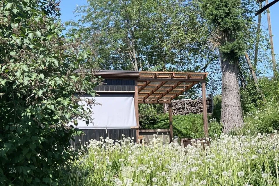 Kinnistu on langeva reljeefiga, hooned asuvad kõrgendikul - ehitusjärgus elumaja, teisaldatav saunamajake ja eraldi asetsev suveterrass.