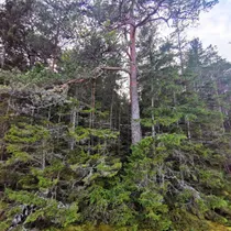 Kõrge ja kuiv maapind, kõrghaljastuses männid ja kuused.