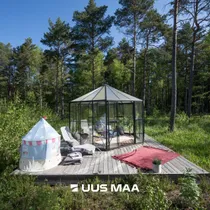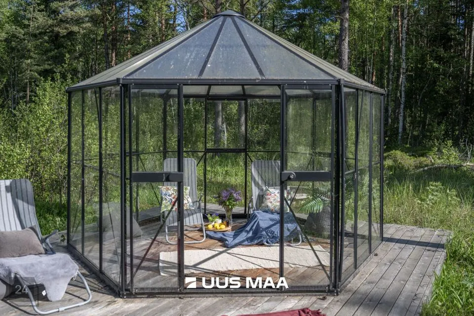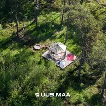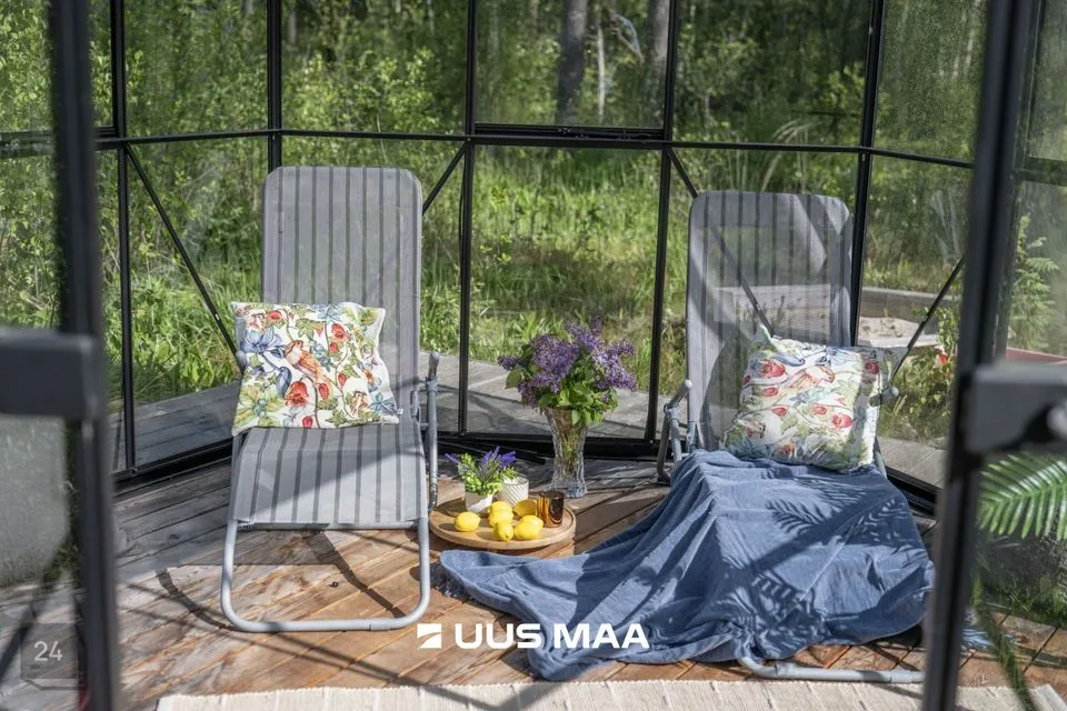 Kinnistul väike kuppelmajake, kus juba praegu mõnus grillõhtut korraldada.