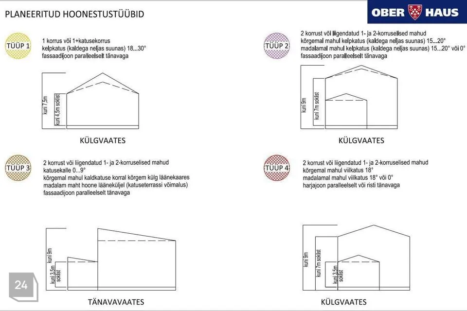 Planeeringualale on planeeritud nelja tüüpi hoonestus. Kõikidel hoonetel on lubatud keldrikorrus