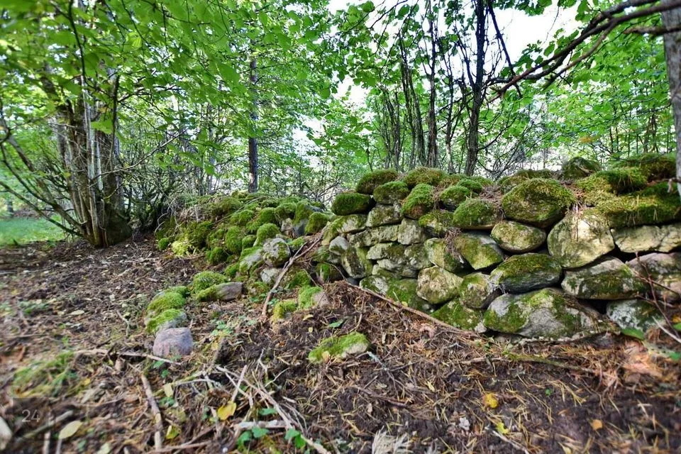 Kinnistu põhjapoolsemal piiril sammaldunud vana kiviaed.